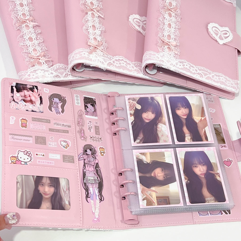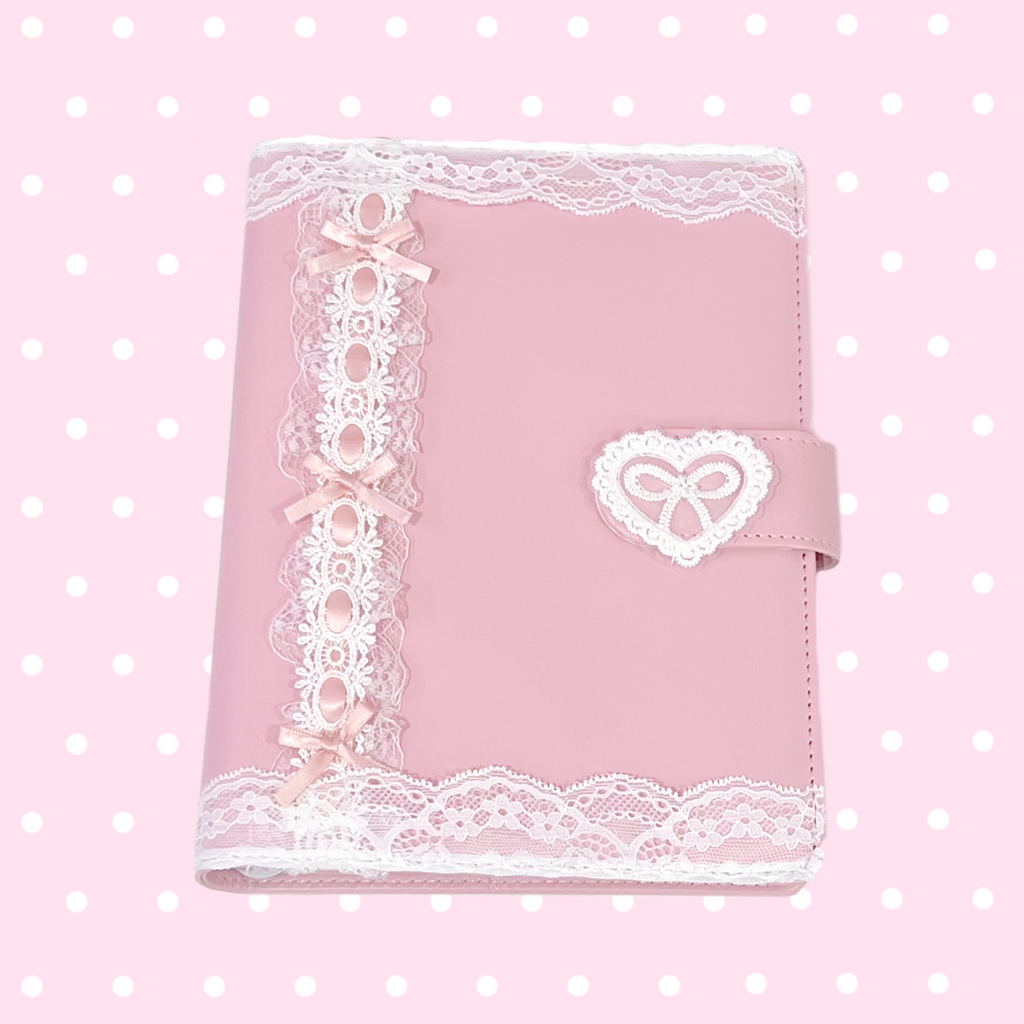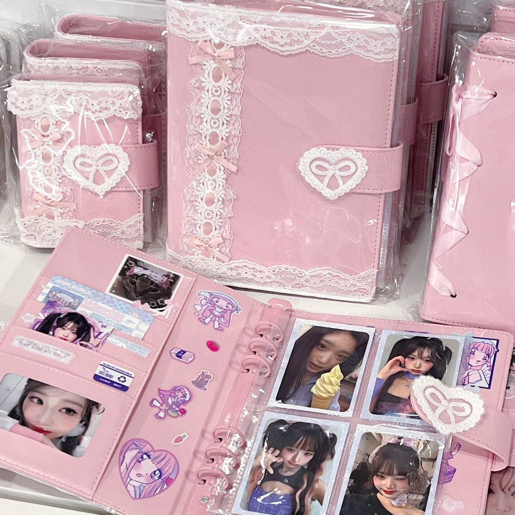 PLEASE NOTE: All binders will not look identical and there may be varying degrees of lace tautness and bow placements. Each purchase includes one binder and one set of pages (10 pcs) only and does not include any of the stickers or other accessories shown in the photos. Additional compatible pocket pages can be purchased here.